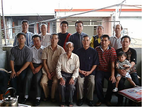 學法三十年後與師兄弟各攜帶弟子前往探訪張老師,師徒情義難得可貴!已有三代同堂的傳承。最前面一排中間張老師,右張勝易(師弟),蔡伯溫(師兄),王建松(師兄及孫子)。左筆者,蔡添旺(門徒),江大欣(門徒)。後面一排從左萬正林(門徒),林志平(門徒),郭大維(門徒),曾子翰(非門人),孫碧玉(師弟門徒),劉國印(師弟)。 |